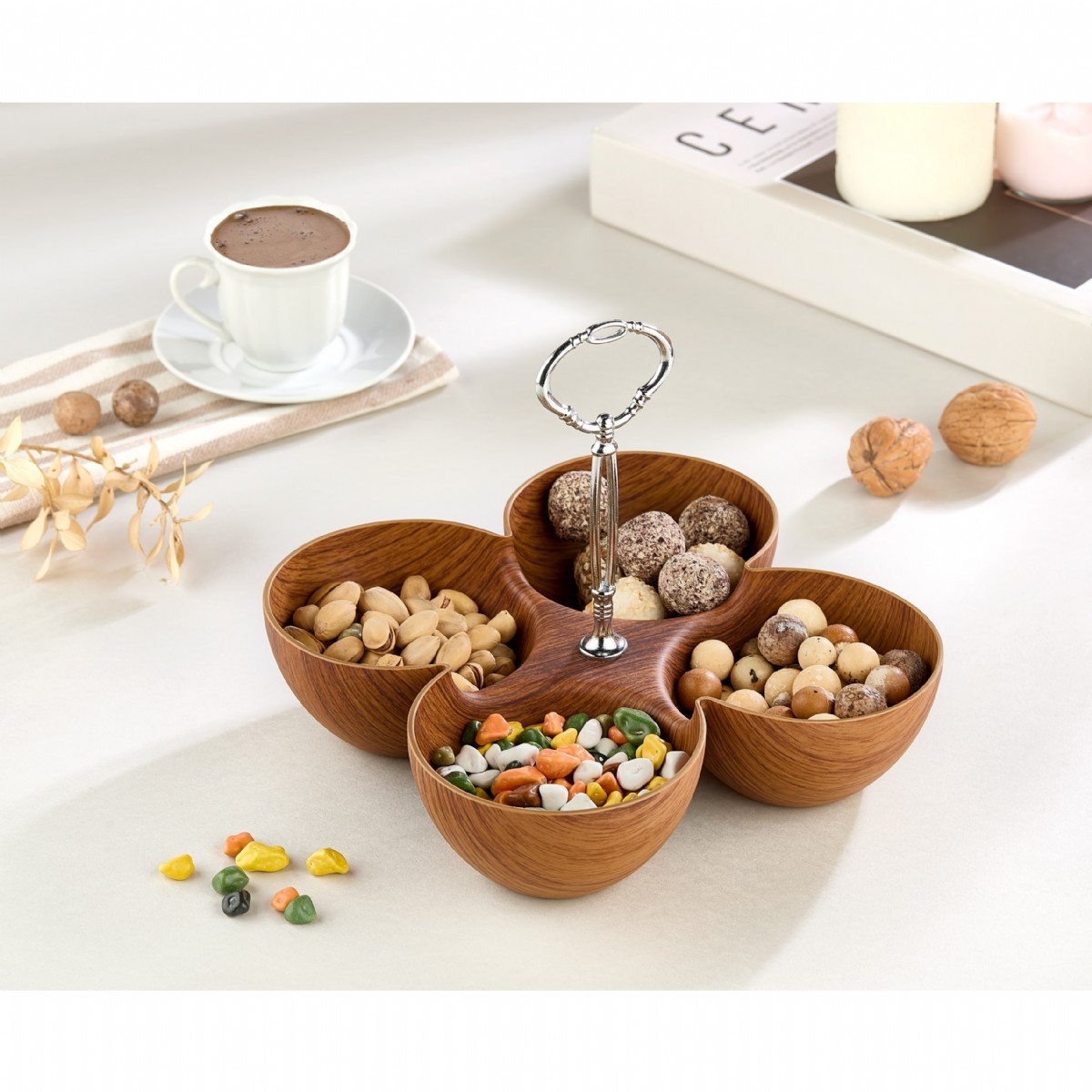 EVELİN 4 COMPARTMENT SNACK DISH W/HANDLE